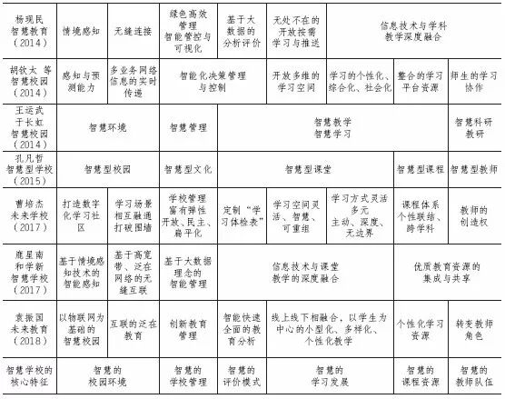 表1智慧学校的核心特征分析