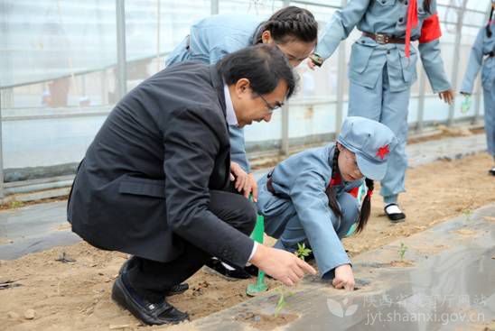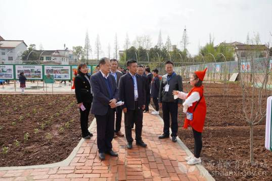 陕西省委教育工委委员、省教育厅副厅长赵昶葆(左三)参观劳动教育实践基地